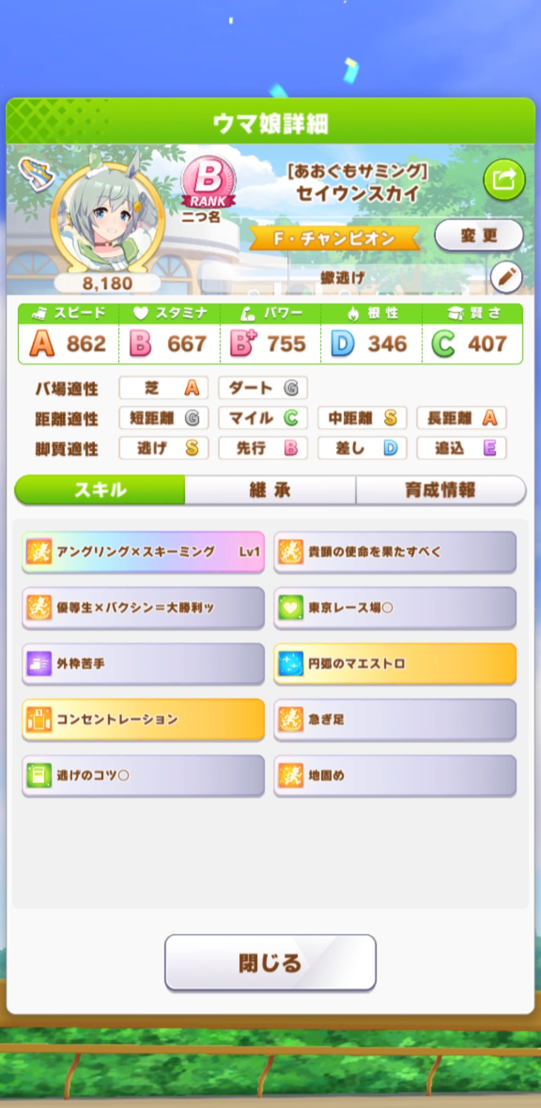 今回は紫スキルチャレンジもしながら育成するつもり