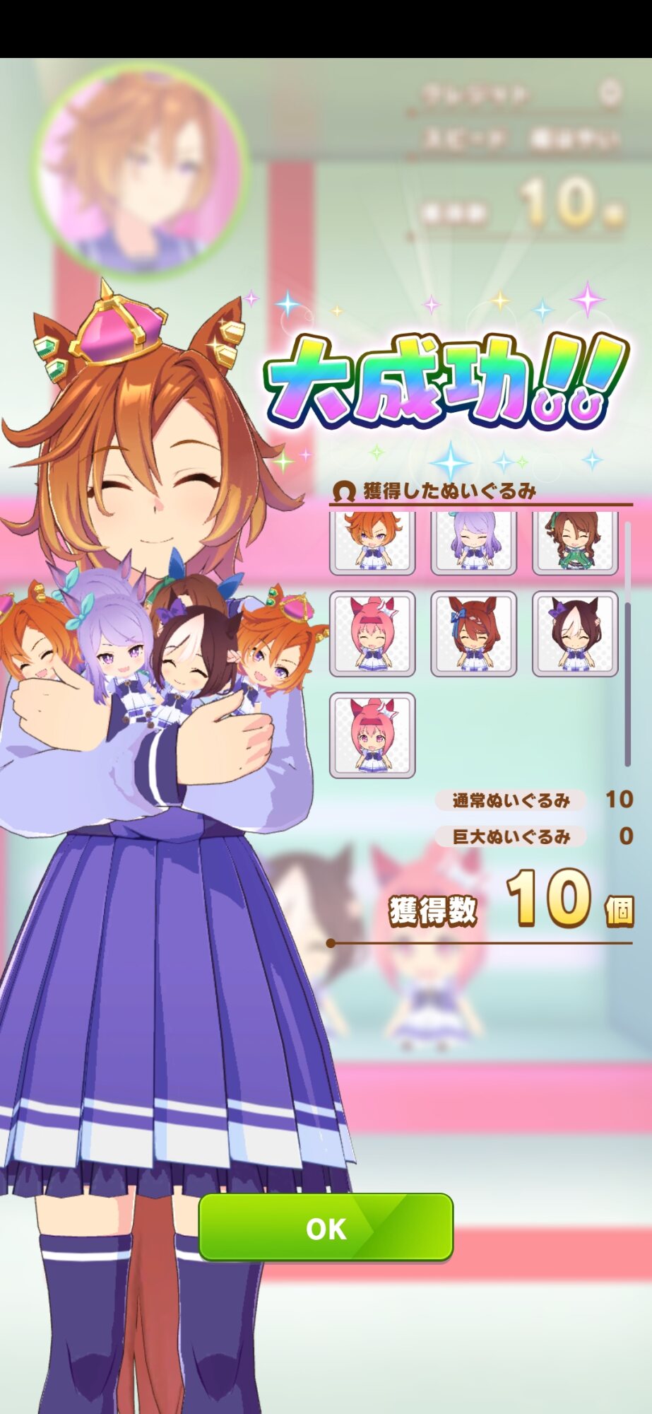オペラオーでぬいぐるみ10個は流石にレアだからと思って結局出してしまった。判定はいつものオペラオーでした