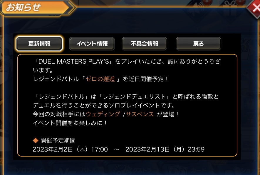 <a href="https://twitter.com/hashtag/デュエプレ" target="_blank">#デュエプレ</a> — デュエル・マスターズ プレイス【公式】 (dmps_info) 2023年01月31日 - 177二次元好きの匿名さん23/02/01(水) 21:14:00