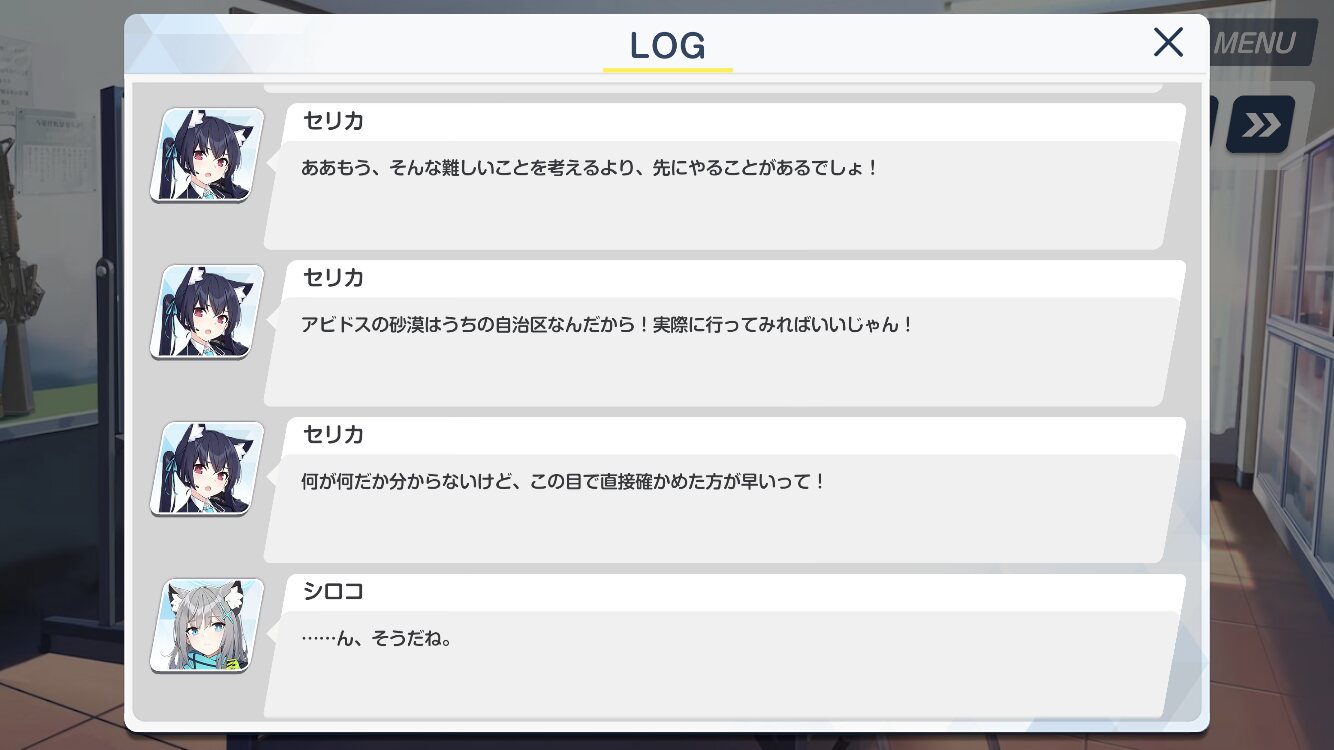 ラーメン屋でアビドスの面々と便利屋の遭遇したところで1-8終了!次は1-9から