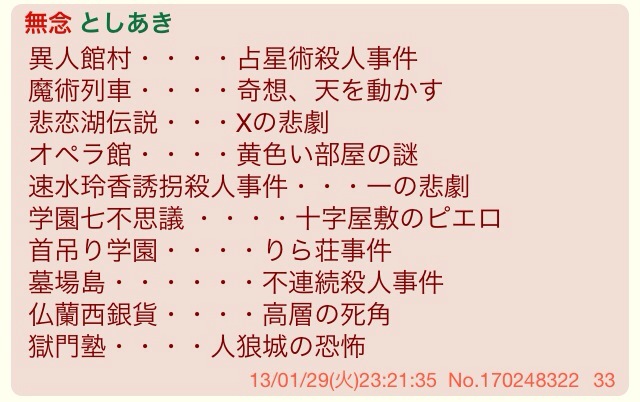 例えばりら荘事件は読んでるっスけどこれ被ってるのは