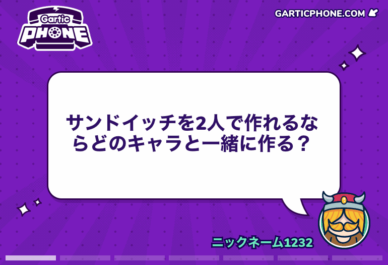 お題を「文章」で入力 ↓ 回ってきたお題(文章)を絵で描く ↓ 回ってきたお題(絵)を文章で書く ↓ 繰り返し【全てわかる】『ガーティックフォン(Gartic Phone)』の遊び方を徹底解説 | ぼくとボドゲ先日書いたコードネームオンラインの紹介記事がわりと好評だったので、今回も最近遊んだブラウザゲームでおすすめの『ガーティックフォン(Gartic Phone)』を紹介します。今、コードネームオンラインと並んで人気のブラウザゲームです! ガーテboku-boardgame.net部屋立てるのも参加するのもご自由にお気軽にどうぞ。