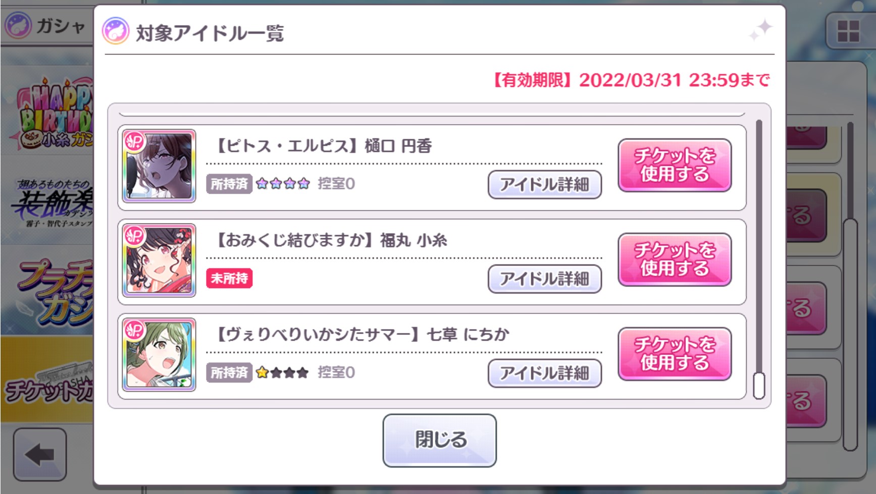 2.5周年の時に始めたからパーティ小糸ちゃんが初めてゲットした限定だった