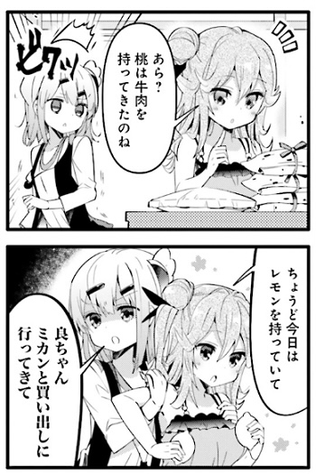 みかんと桃は、こういう気心知れたセリフがパッと出て来るところがいいですね
