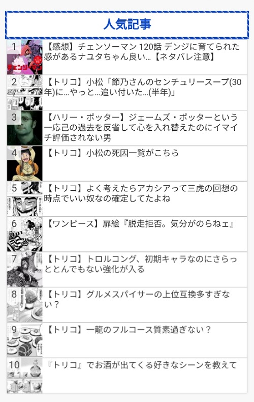 ここ数日のここはカテゴリジャンプ漫画(トリコ)