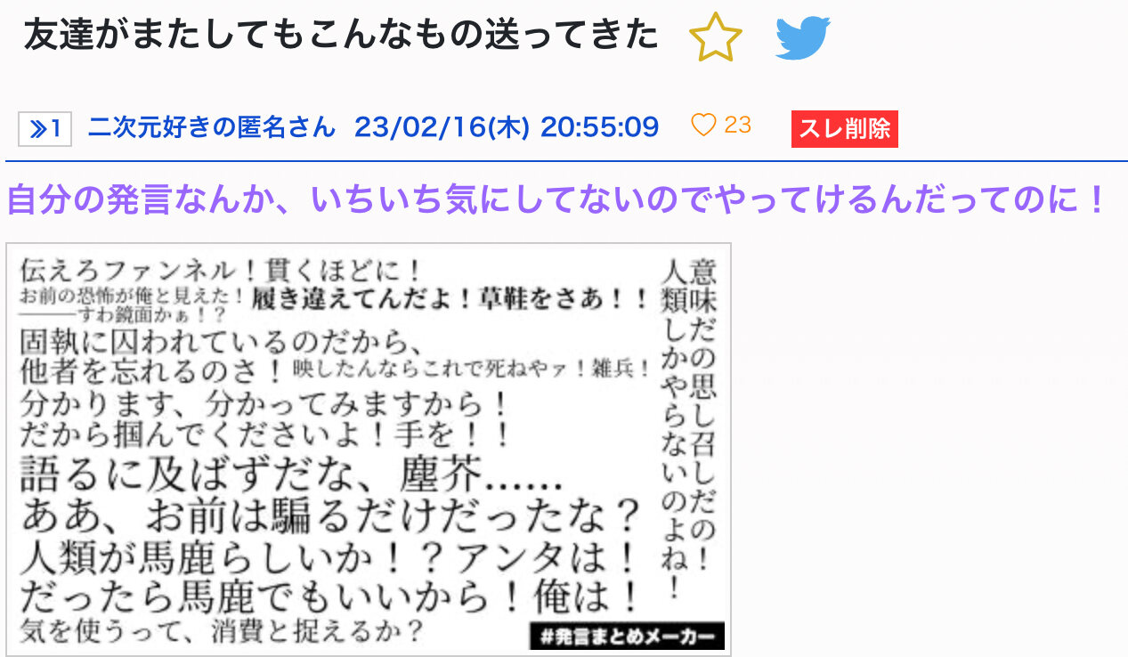 ああいう輩は、自分が悪いんだからって結論を急くから癪なんですよね - 16二次元好きの匿名さん23/02/16(木) 21:44:18