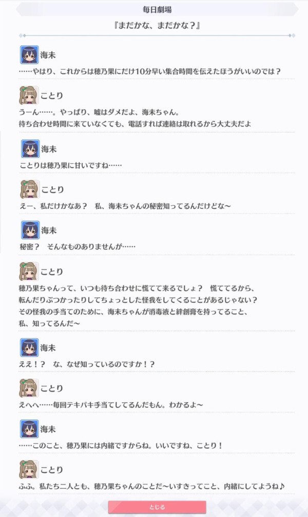 ストーリーで色々言われてたけど3rd season初回のμ's回、今日追加されたμ'sのキズナエピソードは良かったと思うぞ