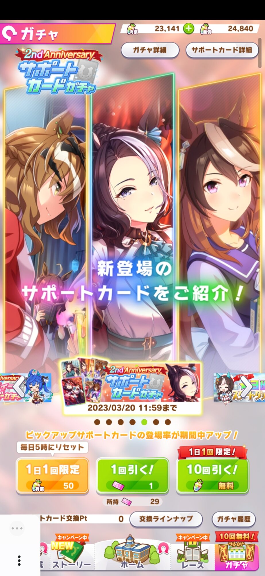 サポとキャラガチャを足して割ればまぁ平均よりちょい上の成果じゃないですかね