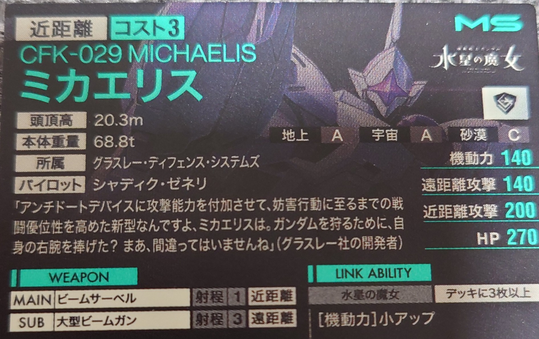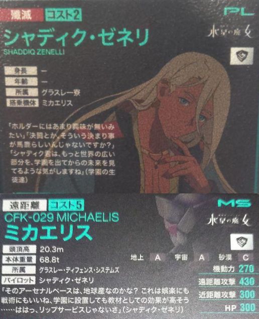 キャラカードだと今回のシリーズのスレッタともう1枚のシャディクが出てなさそう