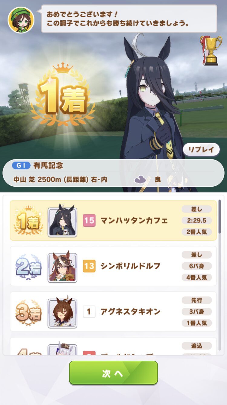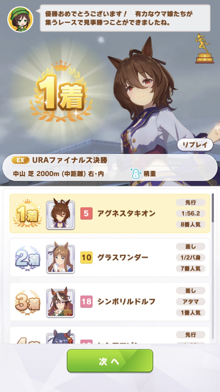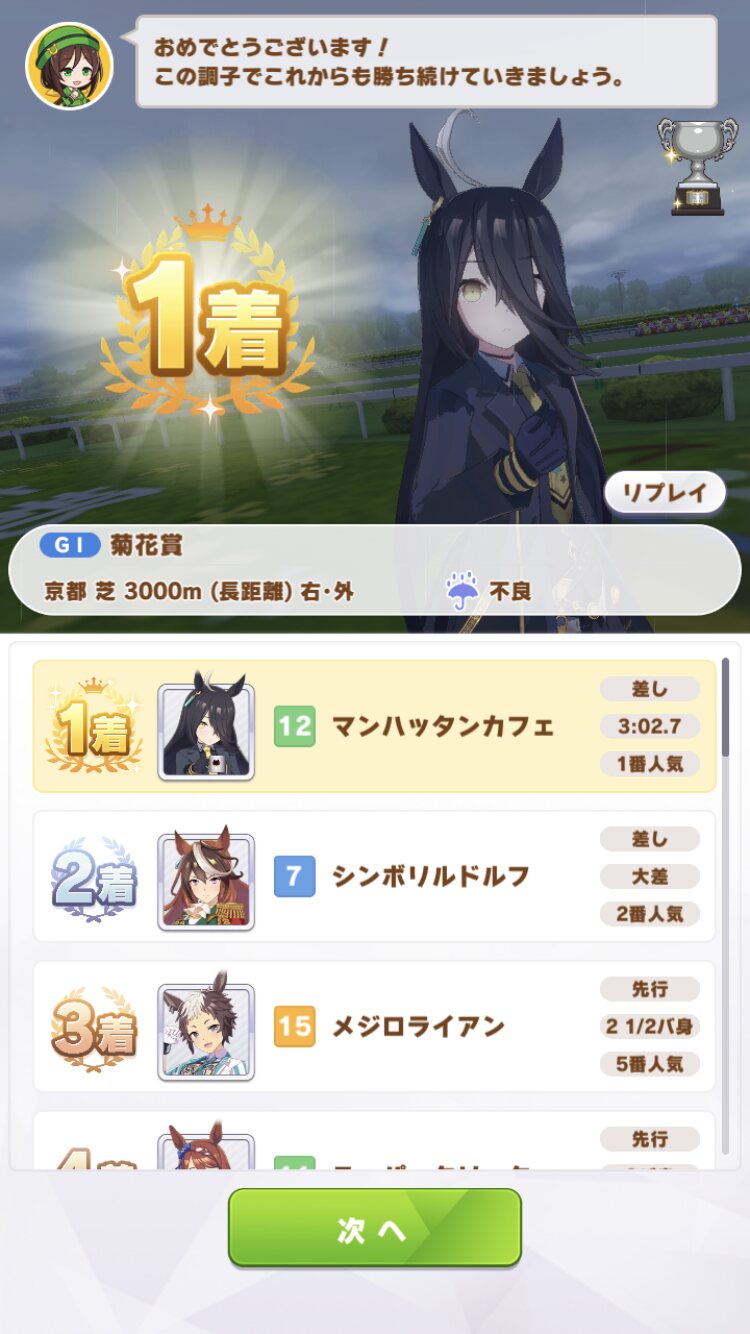 もうすぐ次スレも建てるので次に育成するウマ娘については次スレで説明させていただくと…し!ま!しょ!う!かァ!! - 188二次元好きの匿名さん21/11/16(火) 12:55:03