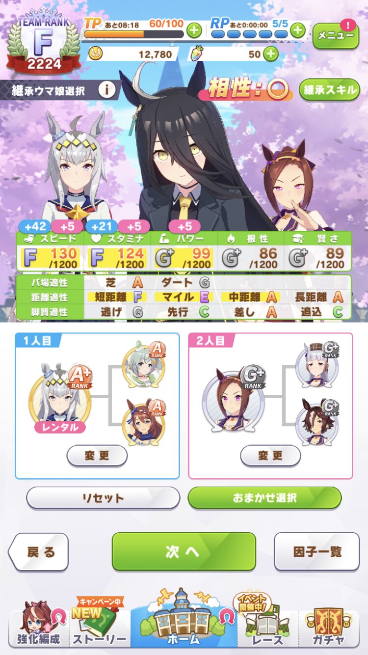 温泉出るまで繰り返しはまた後でやるとして今回はフレンドの因子禁止縛りをやろうと思います。ちなみににんじん1本でした