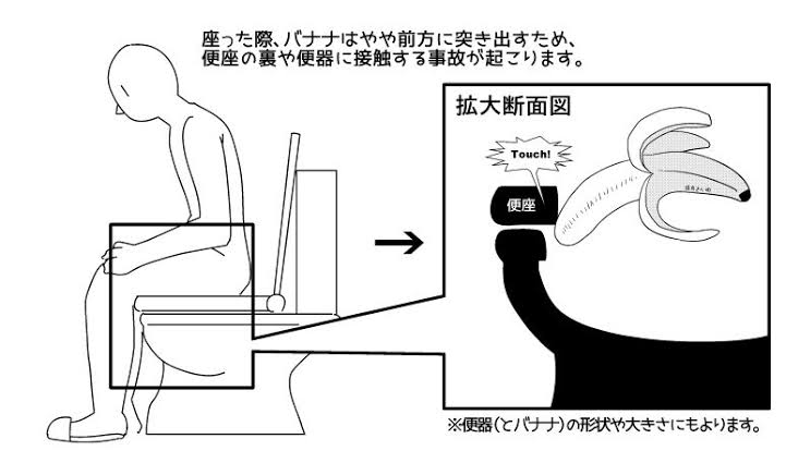 真面目な話デカチンでなくとも外で使ったトイレが普段利用するトイレと比べて前が浅いようならミスって接触することもあると思われるが…