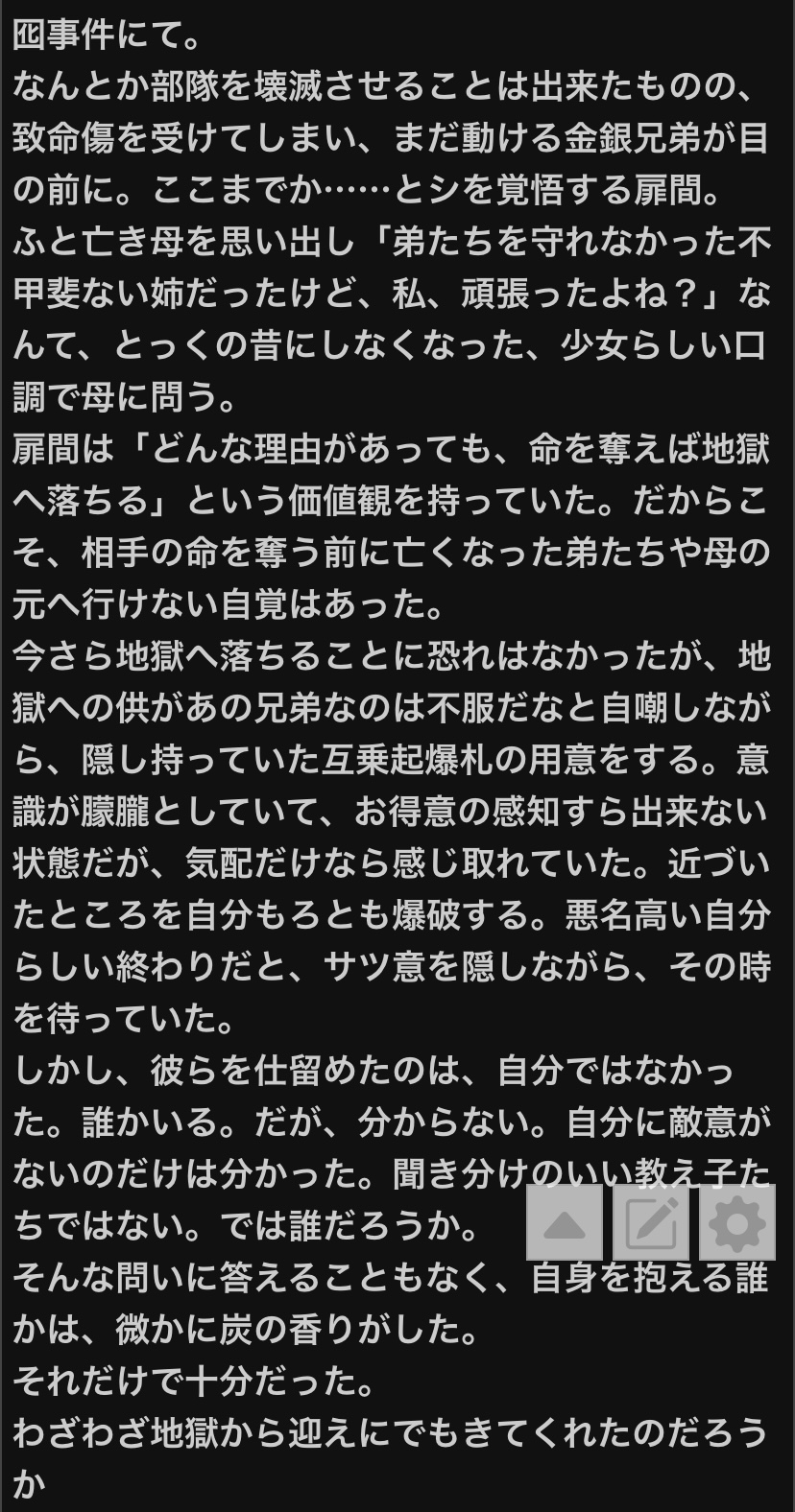 扉間♀は扉間♀で、マダラの(いい意味での)枷や重石になりきれなかった自分に思うところはあっただろうから、お互い様とも言えるかな