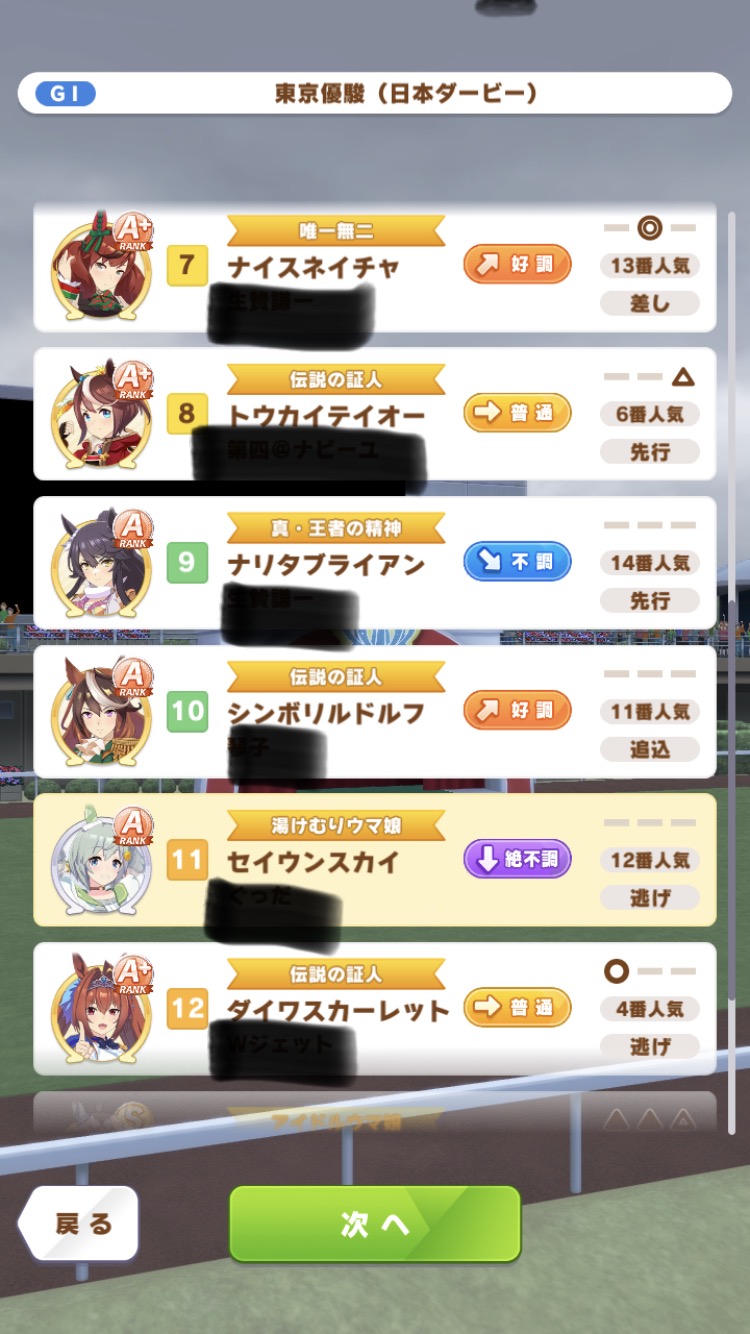 ちなみに1人だけ純然たるデバフ要員(ネイチャ)を出した性悪は私だ!