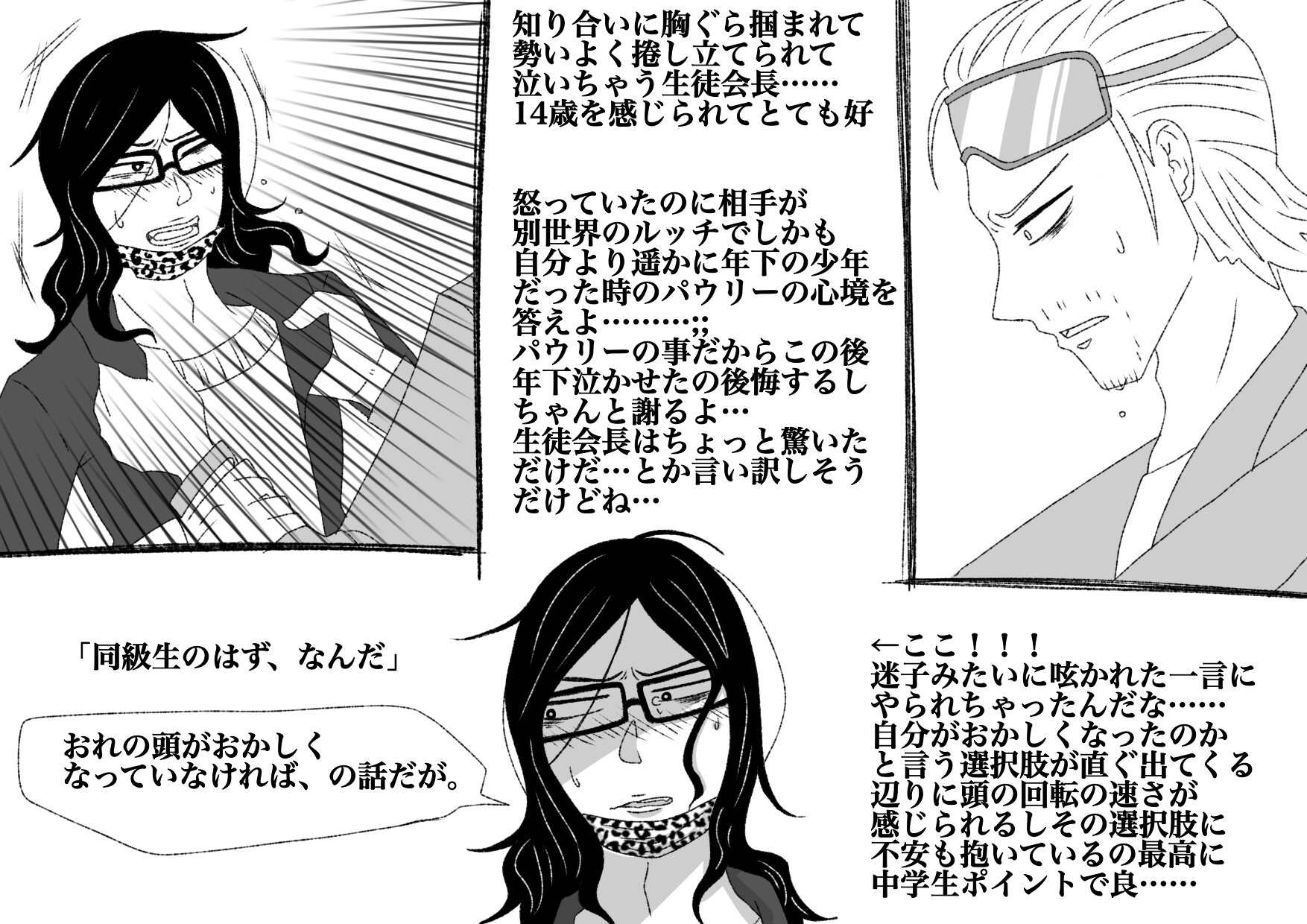 知った顔が割といる世界だからこそ元いた世界との違いに結構デカめの衝撃受けそうで アーロンとかが普通に生徒でいる以上種族差別とかも無さそうなんだよなンピ学ワールド…