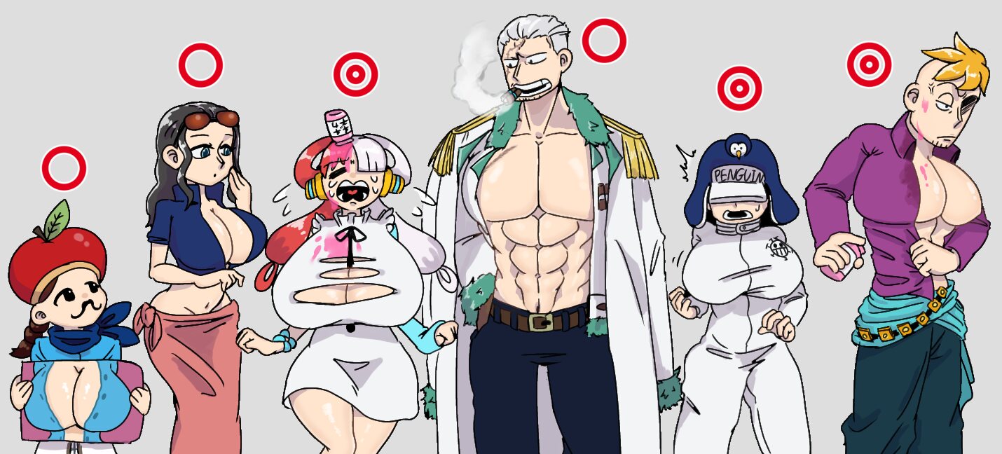 思い付きで乳をでかくしてしまったカク「やっちまったかもしれんのう」一人だけの広い部屋に、どうしようもない後悔と諦観を滲ませた声がぽつりと響く。姿見に映る人間の、細身ながらも鍛えられた肉体は、筋張って隆起する筋肉や迫り出した喉仏、発達して広がった肩幅に注目すれば確かに彼が人間の男性なのだと分かる。女と見紛うような顔も体格もしていないし、彼を知る者であれば全員が全員、当たり前のように彼を男と言うだろう。