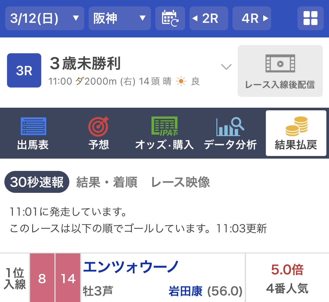 これはメインレース2人で決まるサインだなって書きに来たら、リンダリンダ今日メイン騎乗なかった