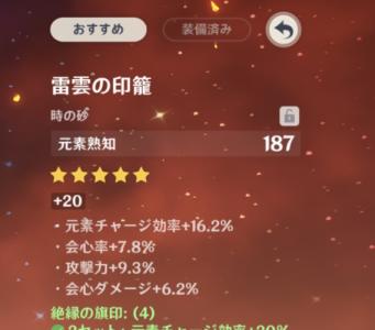 まあ絶縁がベストなのは認めるけどキャラに合った聖遺物が落ちるかは関係あらへんからな