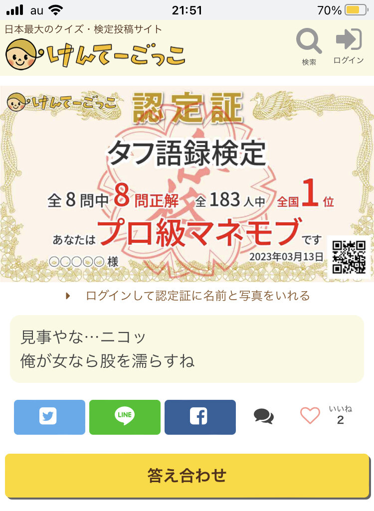 おおっ!未読蛆虫のワシが6問正解している!