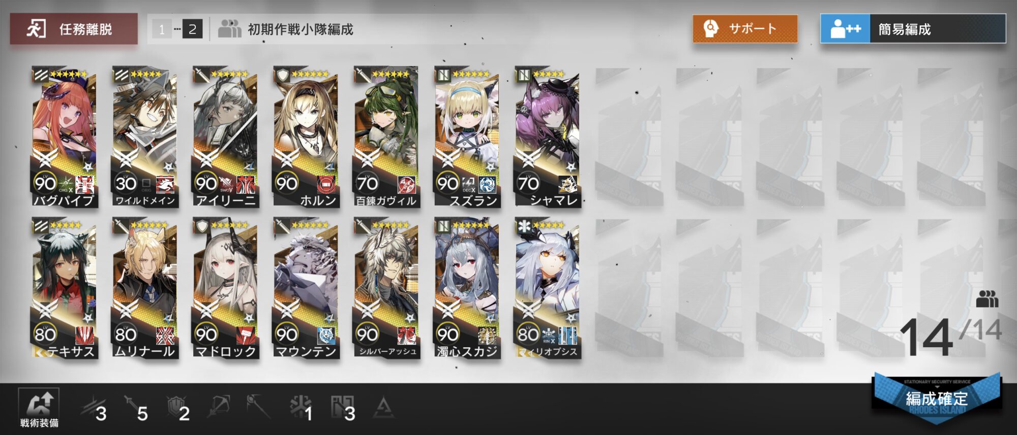 保全駐在でムリナール試運転したけど、火力は充分高いから前衛バフ1:先鋒バフ4くらいの比率でスキルどんどん撃つ方が使いやすかった