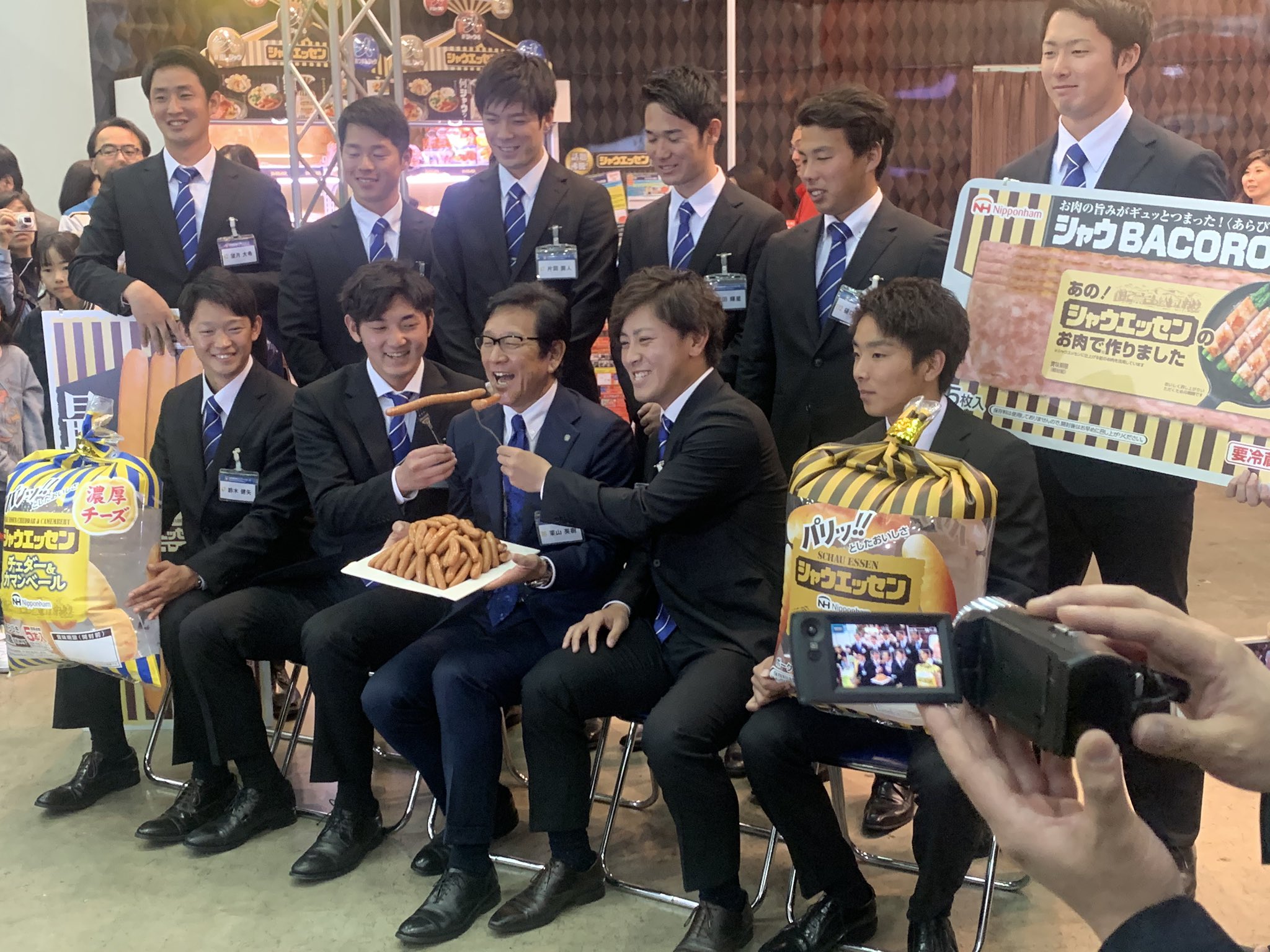 <a href="https://twitter.com/hashtag/栗山英樹監督" target="_blank">#栗山英樹監督</a> 今年も新人たちにソーセージを食べさせてもらって嬉しそうです😇<a href="https://twitter.com/hashtag/lovefighters" target="_blank">#lovefighters</a> <a href="https://twitter.com/hashtag/日本ハムグループ展示会" target="_blank">#日本ハムグループ展示会</a> <a href="https://twitter.com/hashtag/ルーキー" target="_blank">#ルーキー</a> <a href="https://twitter.com/hashtag/シャウエッセン" target="_blank">#シャウエッセン</a> — 日刊スポーツ 日本ハム担当 (nikkan_fighters) 2020年01月18日