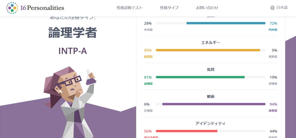 このスレで存在知ってやってみたらINFPだった