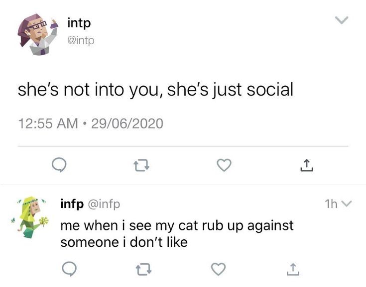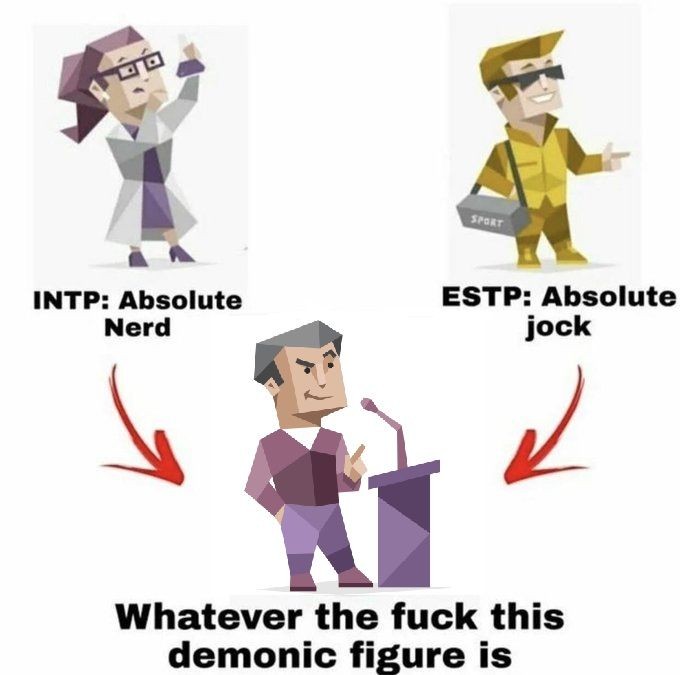 mbti系のネタ画像は海外のやつがいっぱいあるからなんでだ?って思ってたけどどうやらあっちだと日本人の血液型占い並みにミームが普及してるらしいね。血液型占いと同列に語るのはちょっとアレだけど