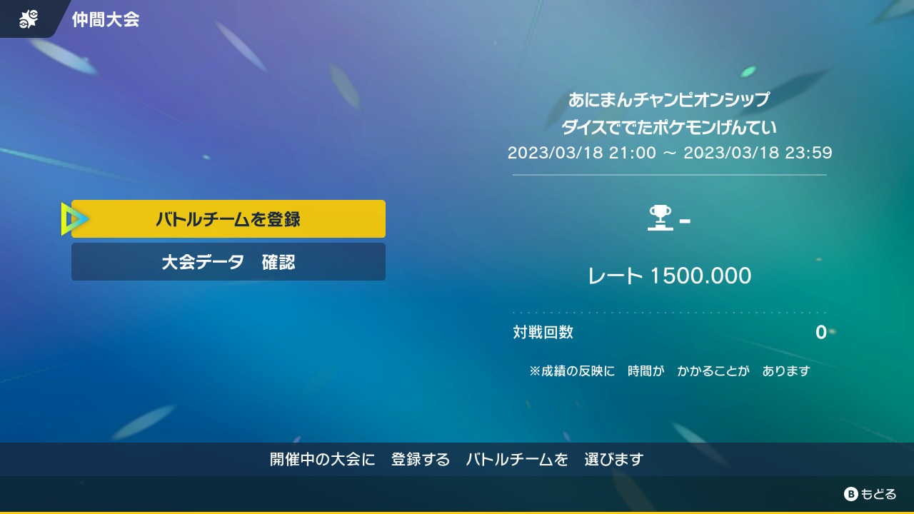 最後に開催日と時間ですね 私が把握してる限りで命中不安技限定仲間大会とタイプ統一仲間大会が開催されるようです 他にも仲間大会が開催されるかもしれませんがそれらと被らない日にしたいと考えています また前回は21:00からの開催でしたが結果発表が1時を超えてしまったのでそれも皆さんで考えたい点になりますね