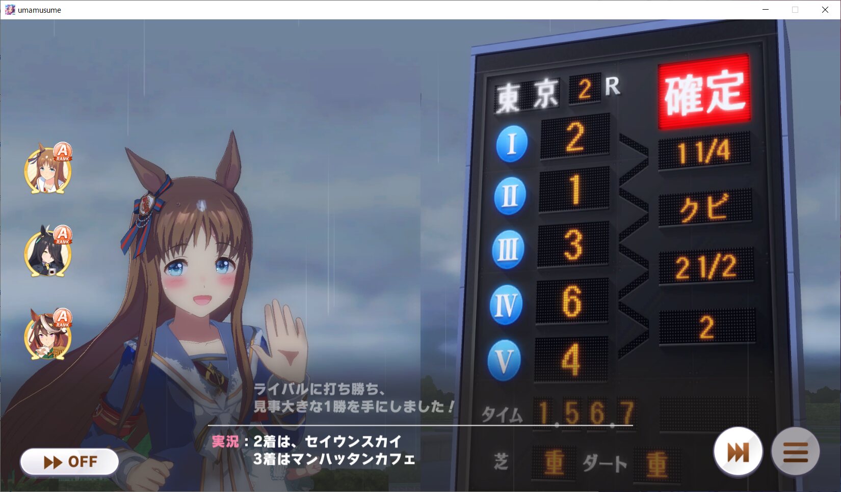 うちの緑スキル&直線◎コーナー◎全乗せマヤノはURA育成なのによくやってくれてるよ