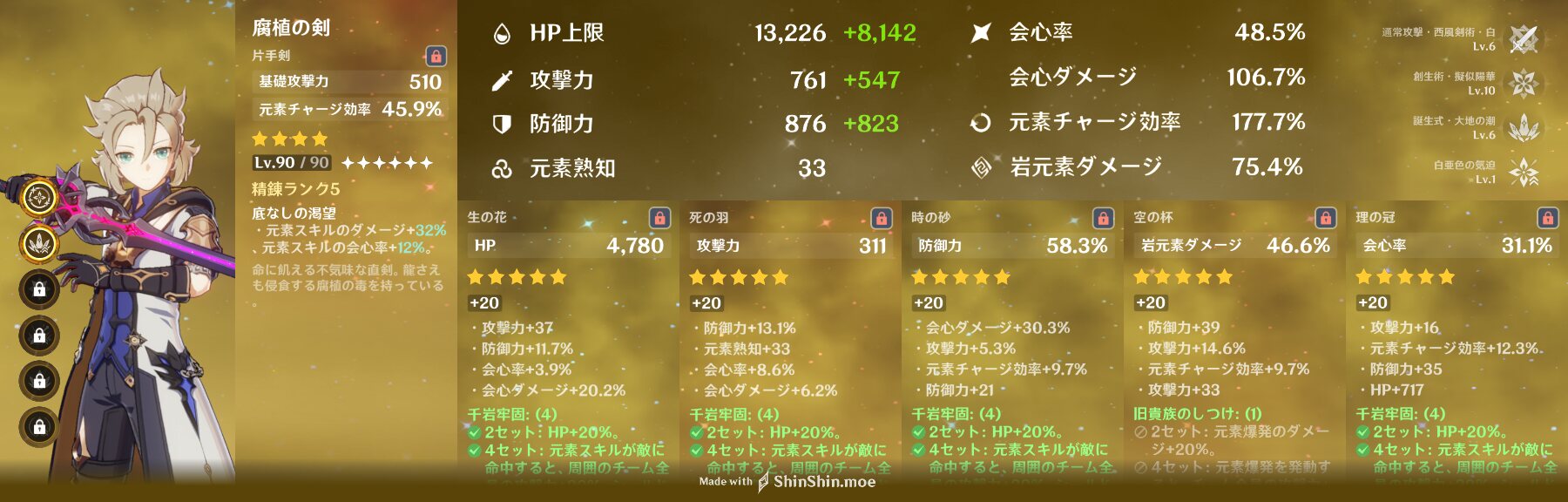 どうせ稲妻つくまでに聖遺物厳選するレベルまでいかないだろうからへーきへーき