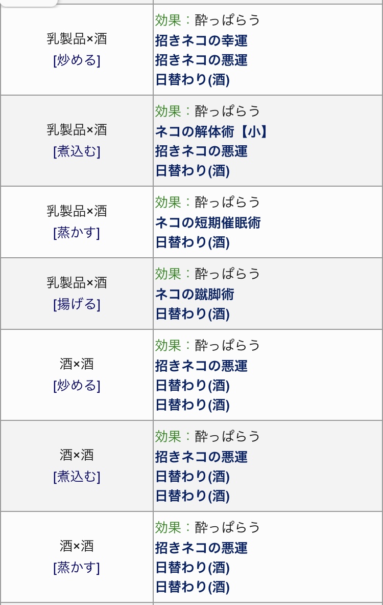 あーーっ料理名は多いしうまそうだけど効果わかりづれーよ