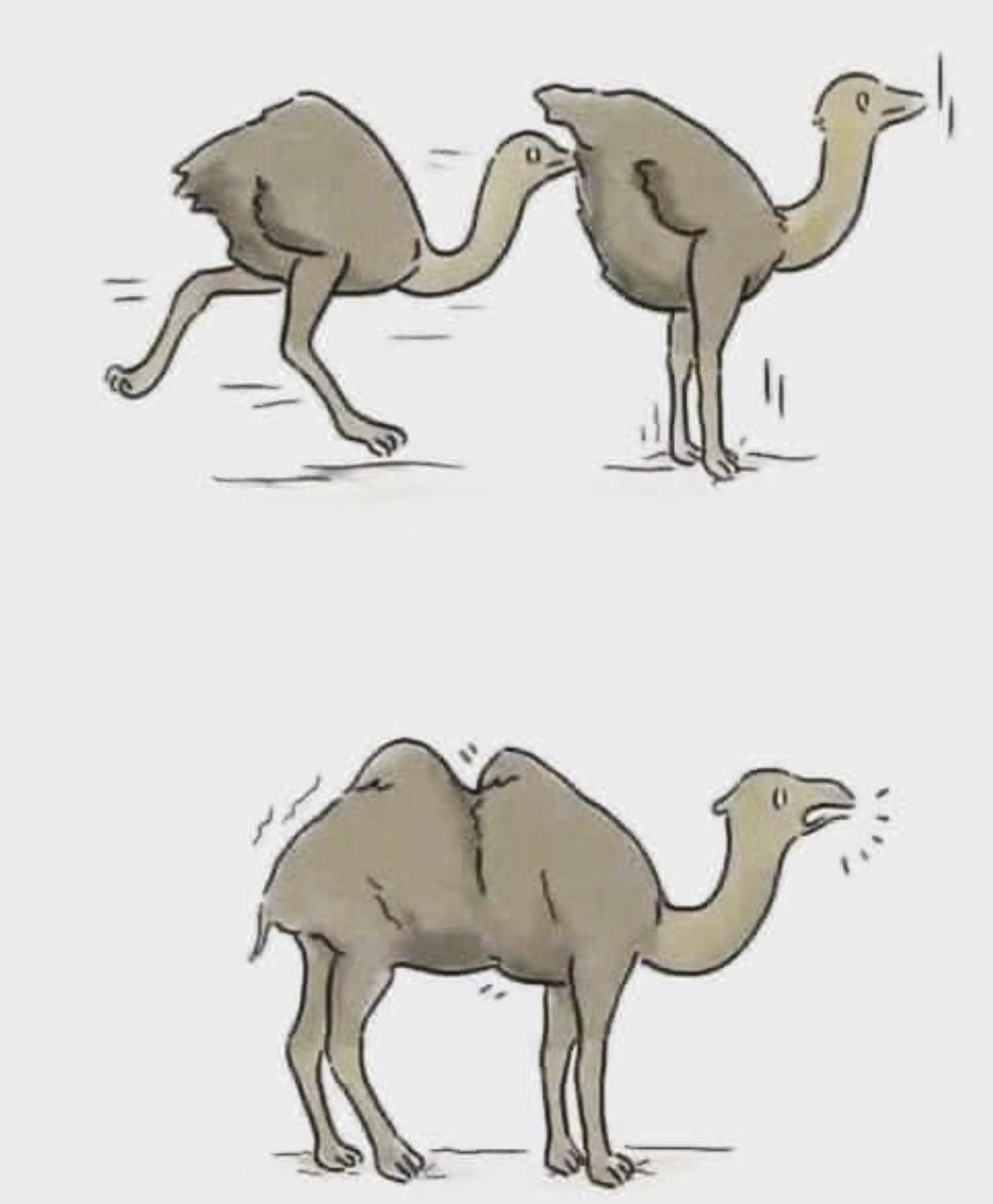 くちばしで地面を掘って餌を探したり卵を産むための巣を掘っているのを誤認しただけだ。実際に天敵に襲われたらブチギレて暴れ回るか走り回るのだ。そしてそのうち自分たちが何にブチギレていたのか忘れるが、その頃には天敵は遥か遠くにいる。