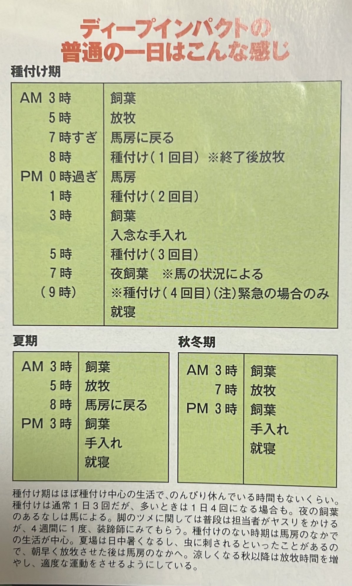 秋冬期に「馬房に戻る」がないのなんか草もん