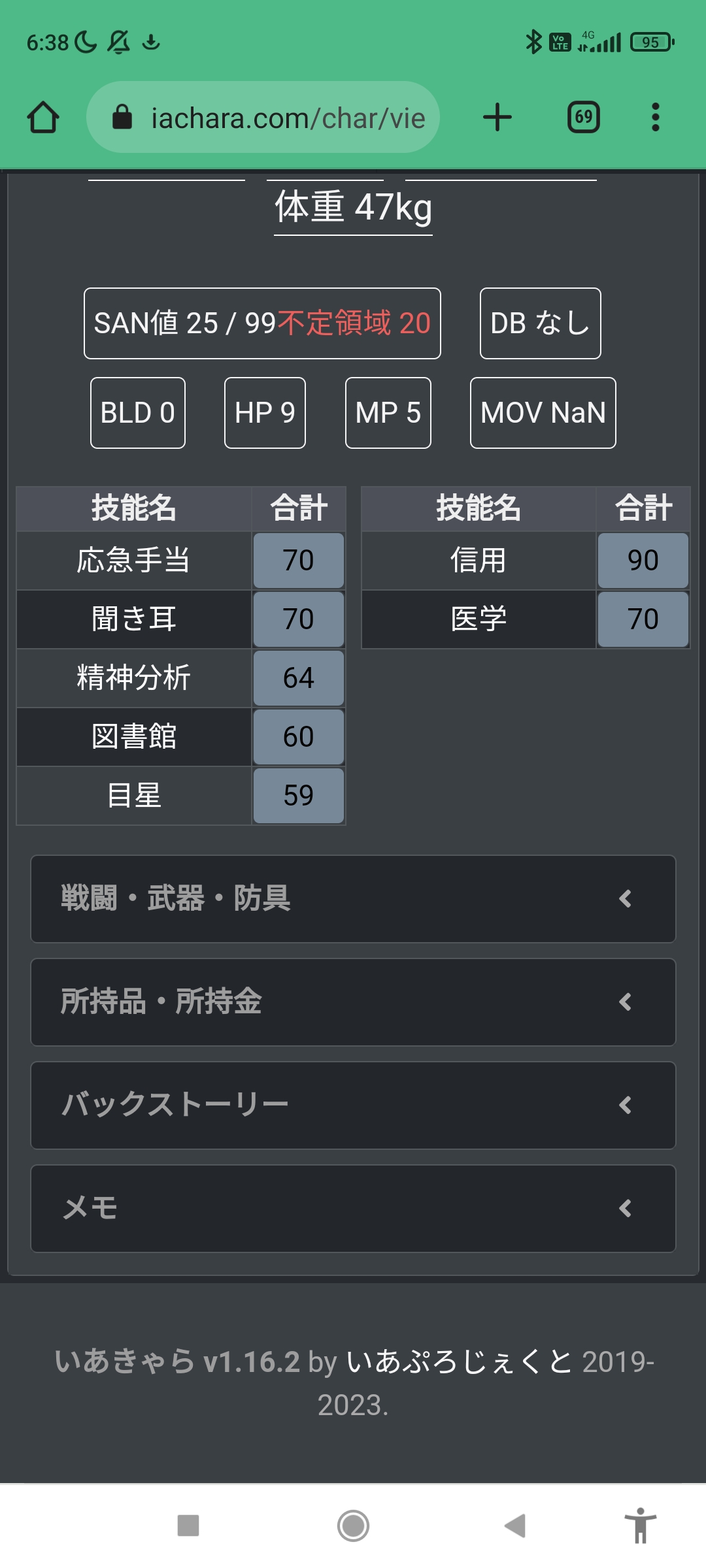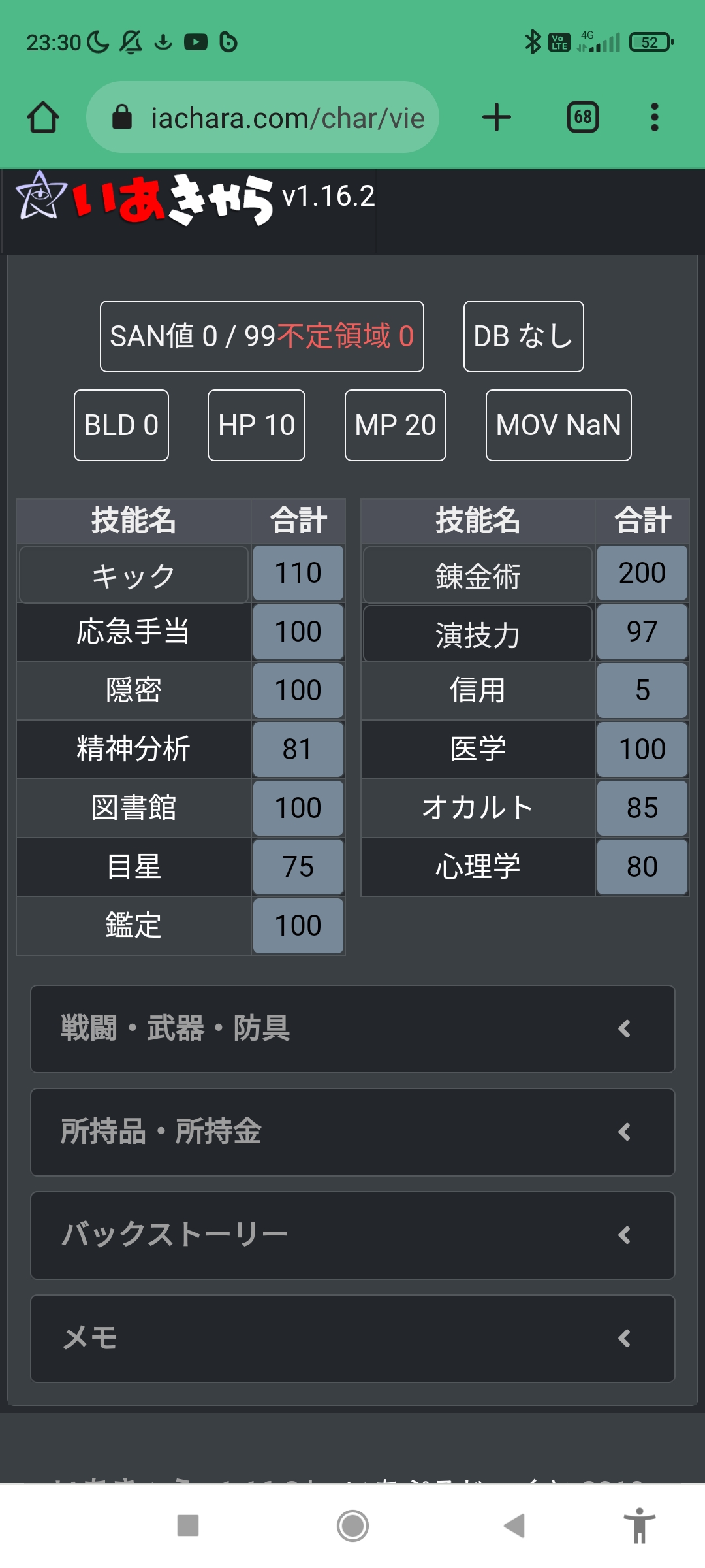 いあきゃら | クトゥルフ 7版 対応 キャラクターシート 作成 ツールiachara.comいあきゃら | クトゥルフ 7版 対応 キャラクターシート 作成 ツールiachara.com - 7ソラ23/04/28(金) 16:33:21