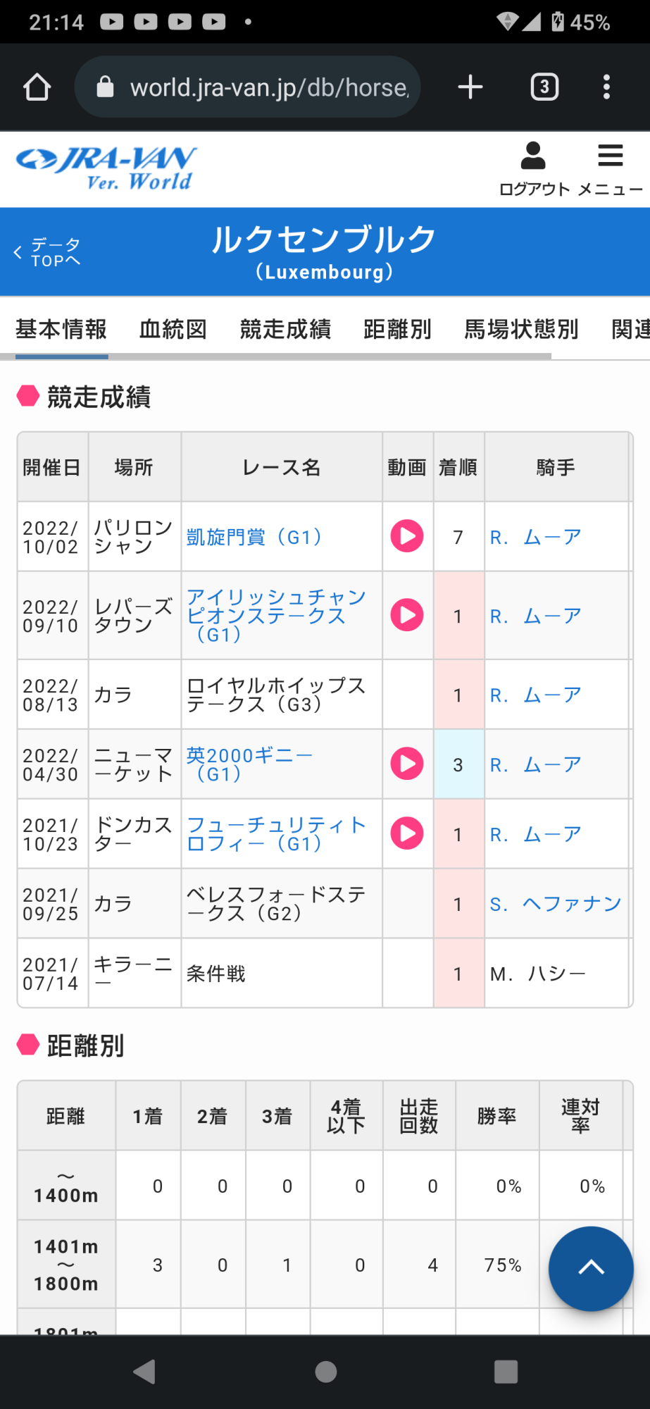 Luxembourgめちゃくちゃいい馬よね、英2000ギニーも複笑勝圏で種牡馬としてもよさそうだし、尚更不憫だな、