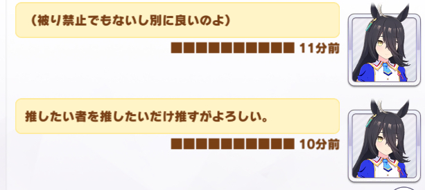 他のウマ娘スレは新情報やらチャンミやらで賑わっていますが、ここは気楽なものですね〜
