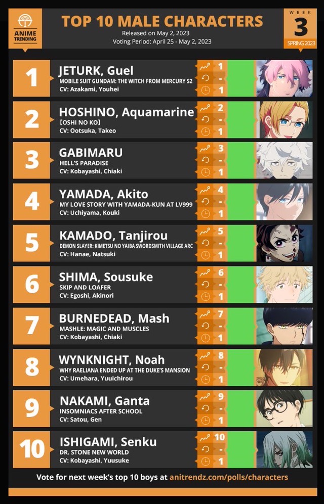Here are your TOP 10 MALE CHARACTERS for Week#3 of the Spring 2023 Anime Season!