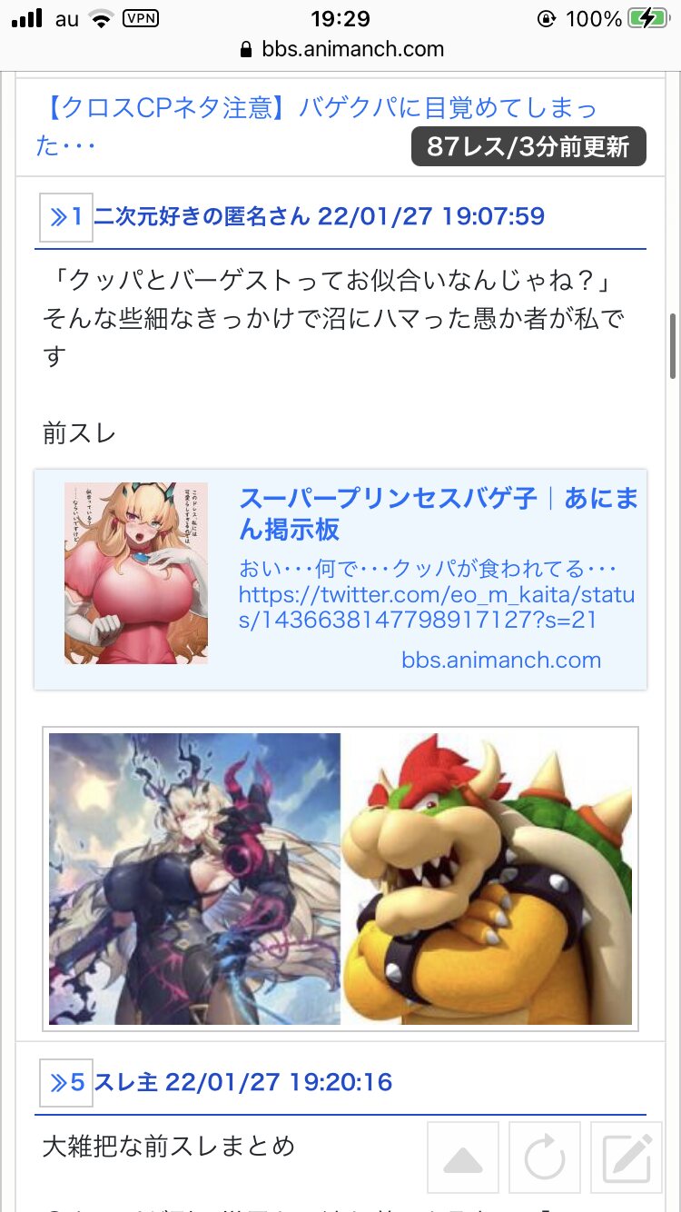 【クロスCPネタ注意】バゲクパに目覚めてしまった・・・part4|あにまん掲示板「クッパとバーゲストってお似合いなんじゃね?」そんな些細なきっかけで バーゲスト(Fate/grand order)と クッパ(マリオシリーズ)のCPにハマった愚か者の立てたスレその4です 高濃度の…bbs.animanch.com - 2二次元好きの匿名さん23/05/04(木) 14:18:46