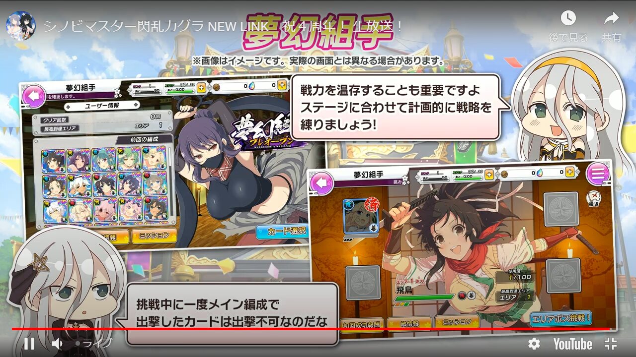 ▶YouTubeLive: <a href="https://youtu.be/C-0NRd3E-cs" target="_blank">youtu.be/C-0NRd3E-cs</a> — 【公式】シノビマスター 閃乱カグラ NEW LINK (kagura_shinomas) 2021年11月29日 - 15二次元好きの匿名さん21/11/29(月) 20:00:19