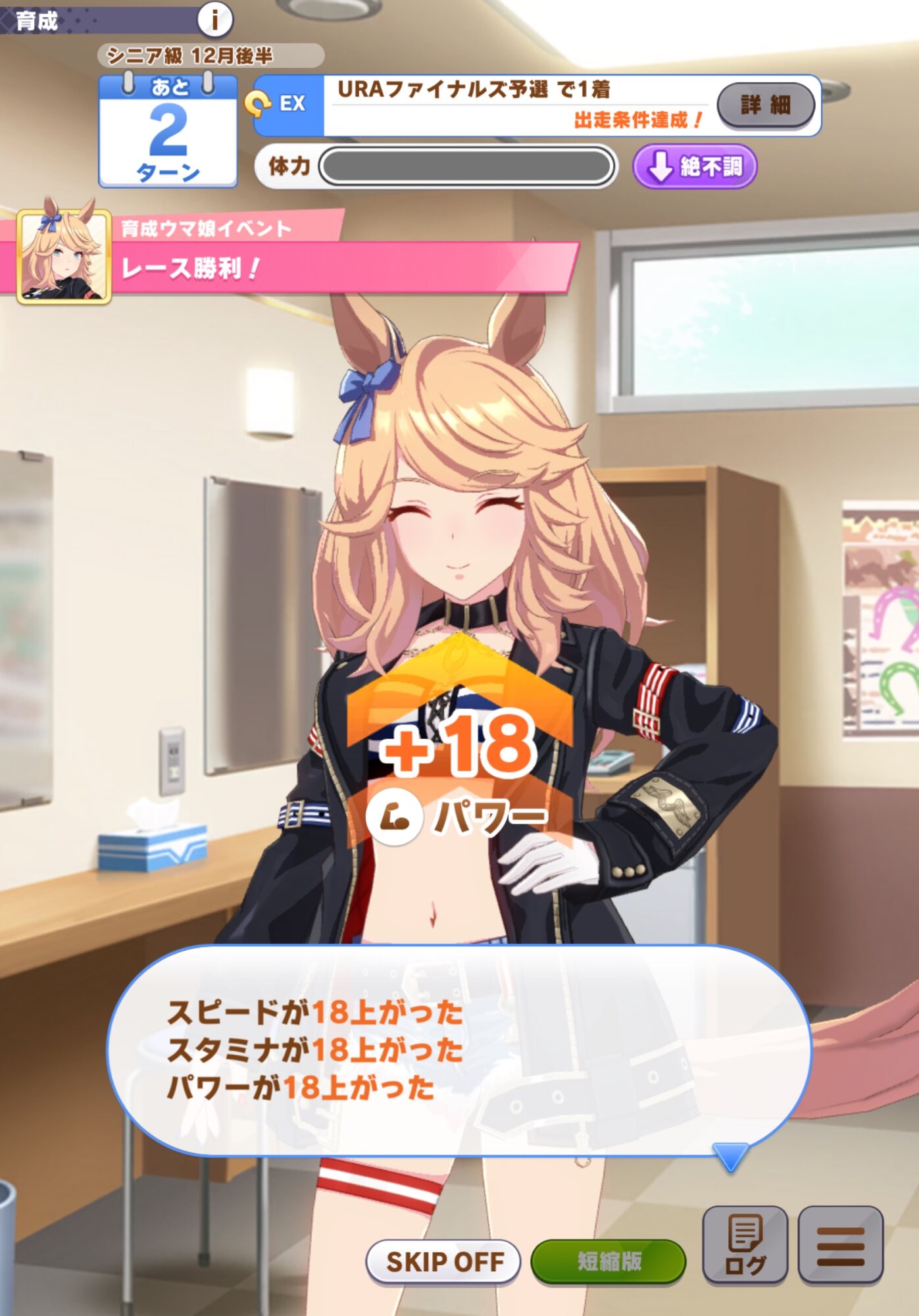 わかりました…超加速つけるかわりに4回目のレース終わったらバースト・レッグするスキルをつけます…