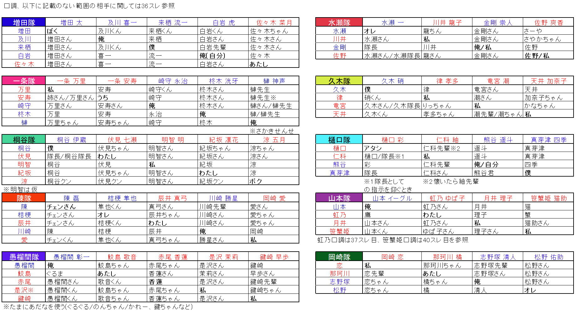 涼→桐谷→旧桐谷隊メンバー→伏見・明智・紀坂