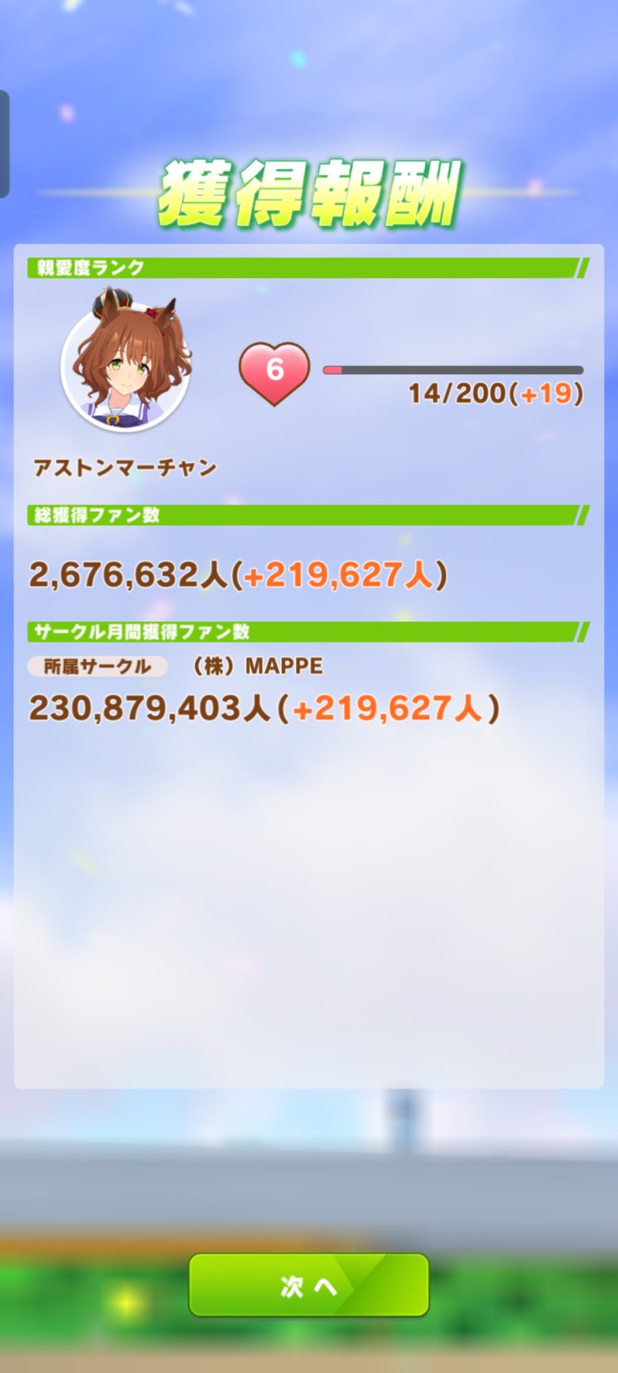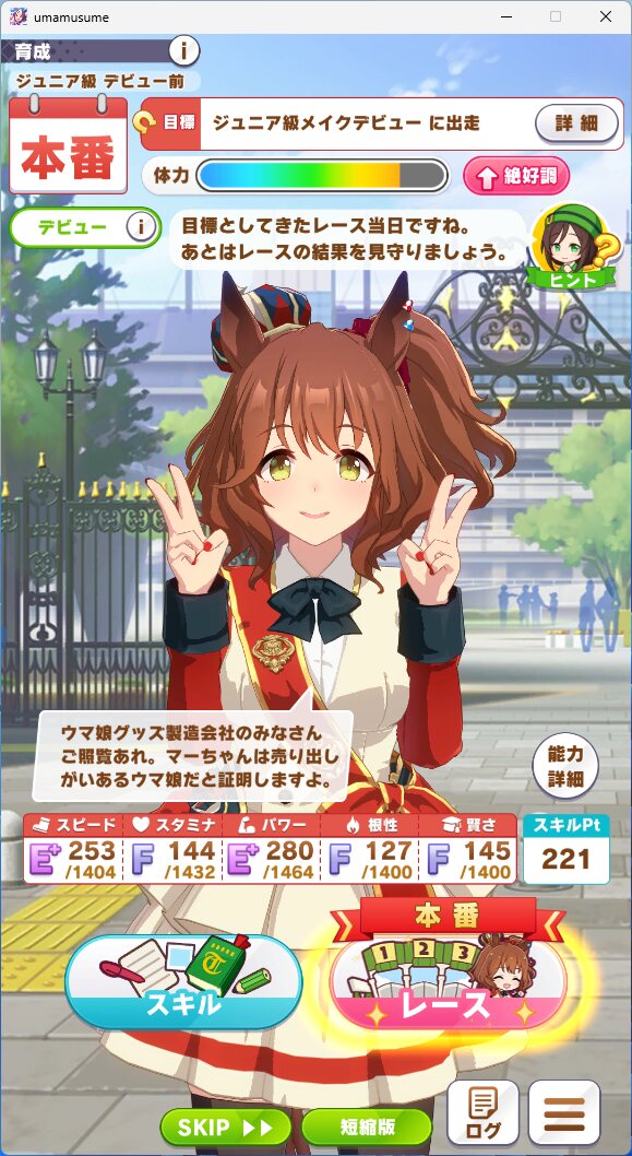 これ行けるはず‥‥‥最近沢山マーチャン育成してるけどこんな感じのステだったら勝ててるような‥‥‥