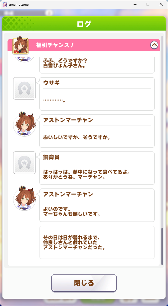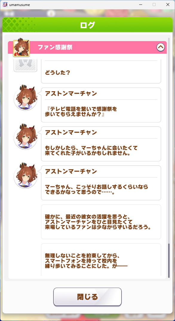 育成シナリオ読破後に解放されるものでありながらも時系列は育成シナリオ完了前になるというキャラスト5話以降の特性もフル活用して、アストンマーチャンという一人のキャラクターを丁寧に丁寧に掘り下げた、マートレ、いや全人類必読の渾身のエピソードでした