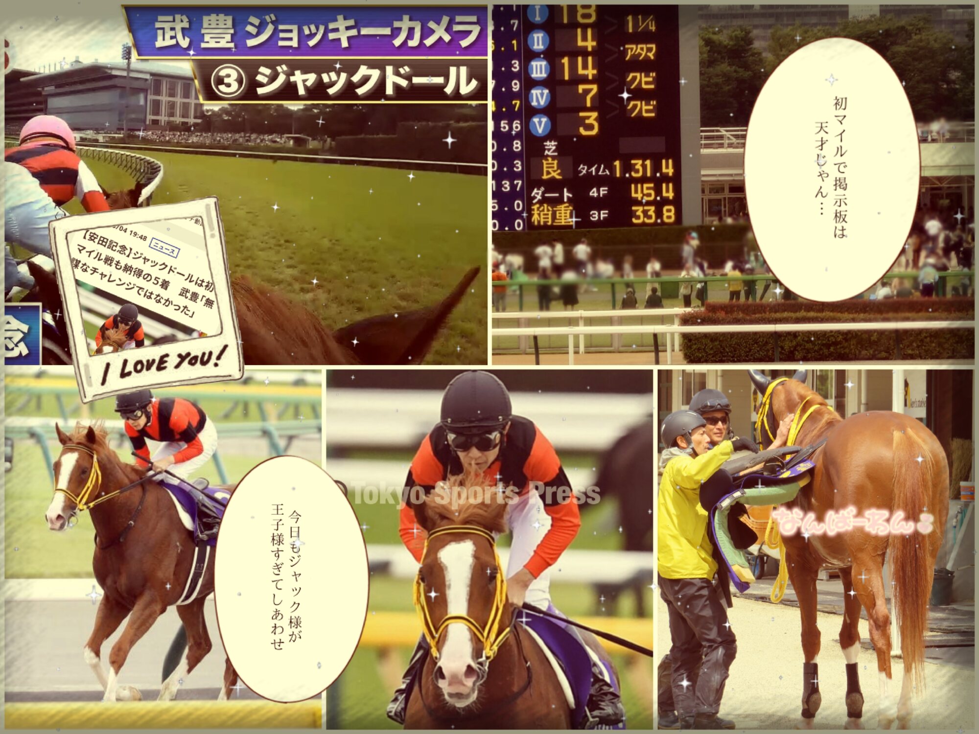 パドック現地民に聞きたいんだけど、パドックで歩いてるときジャックちゃん担当さんに甘えてた?ずっとスタンドにいたんだけどターフビジョンに甘えてる素振りが映し出されて萌えた。ただそれが偶然そう見えるシーンが映し出されただけなのか気になって夜しか眠れない