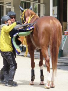 本日のジャックドール、坂路1本から逍遥馬道を通って厩舎へ。脱鞍後に引き運動へ。