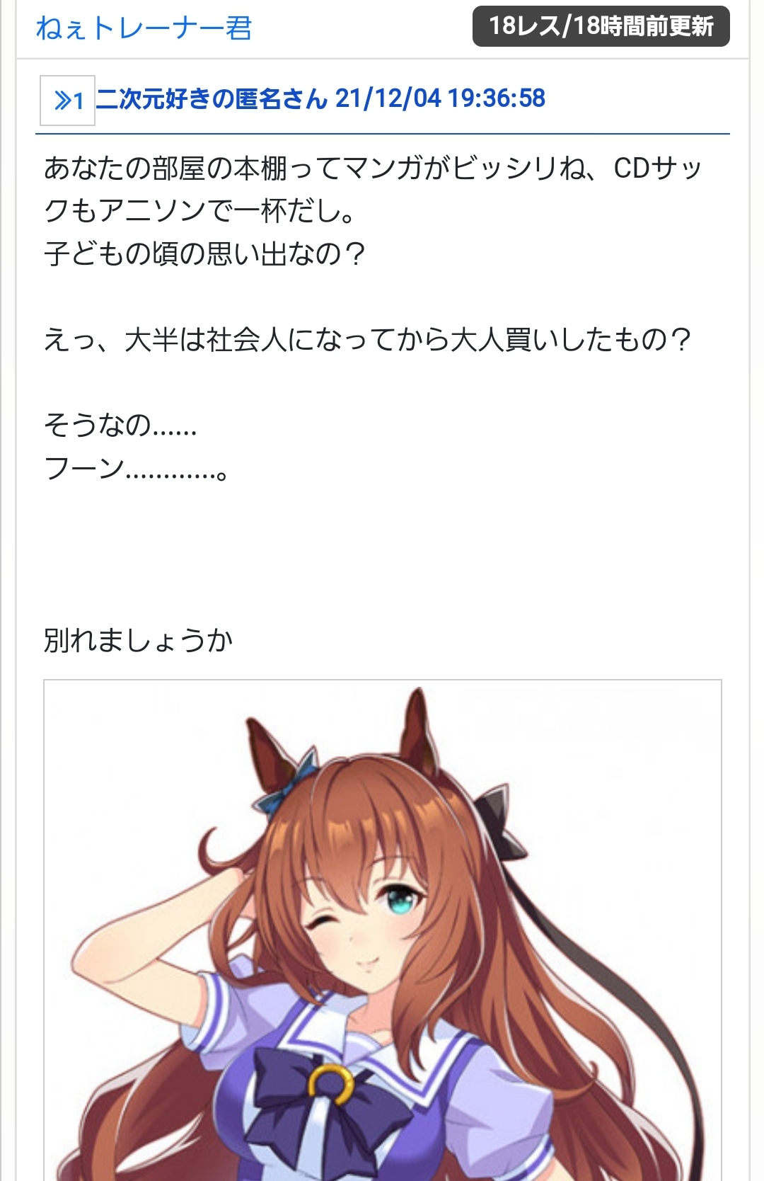 ウマ娘界隈には愉快な荒らしがたくさんいる - 59二次元好きの匿名さん21/12/06(月) 03:01:25