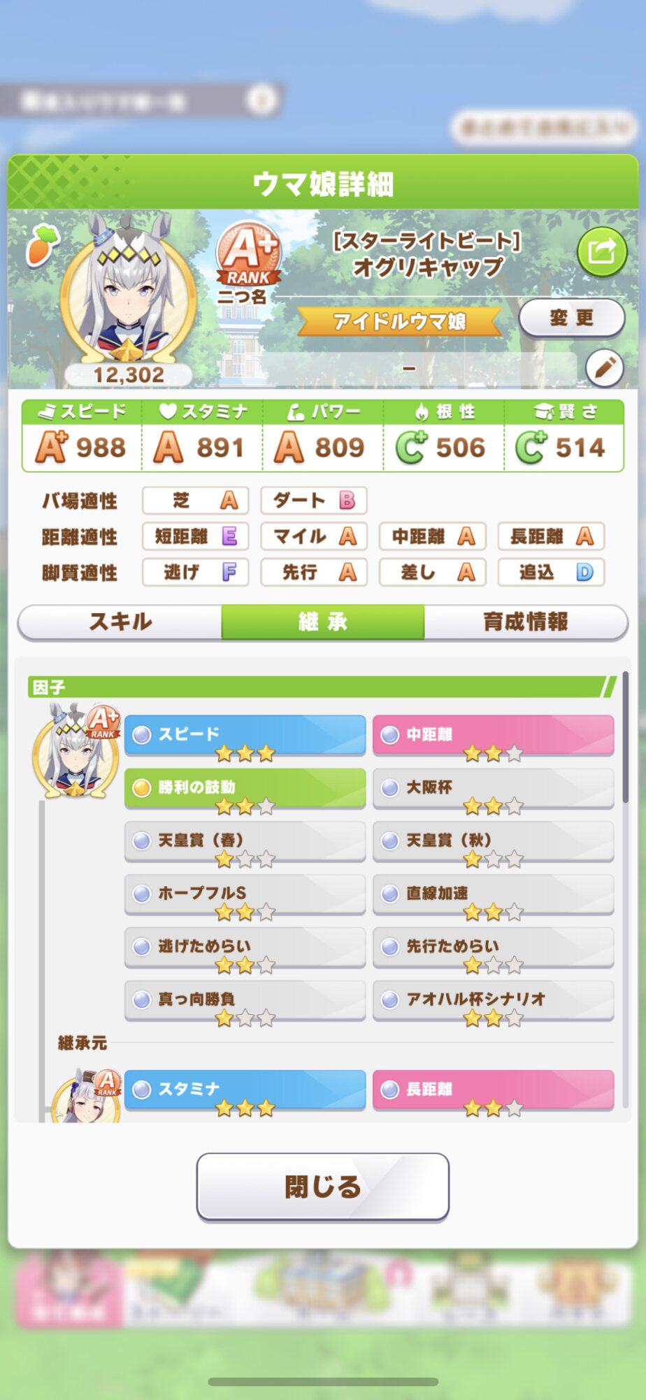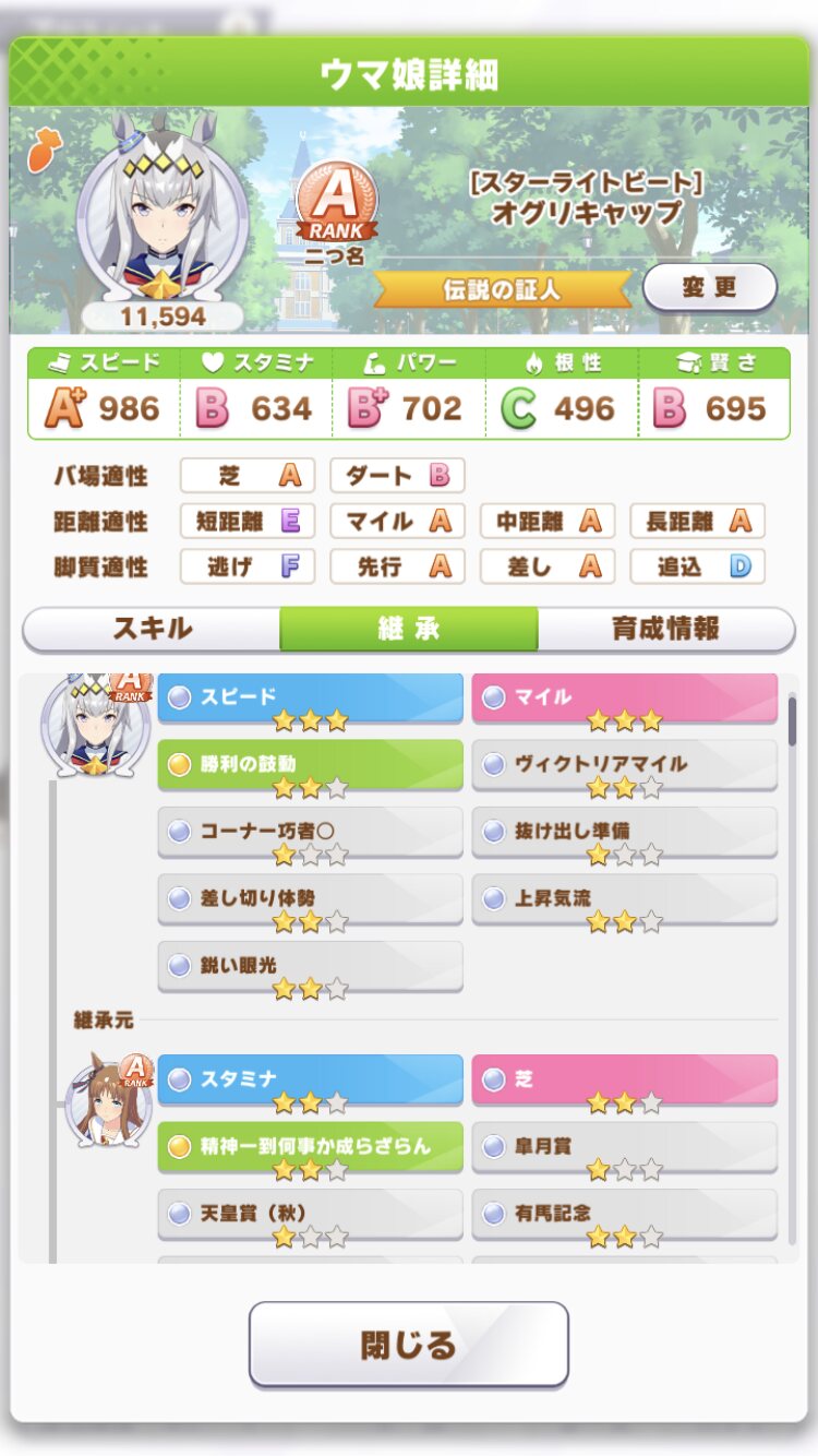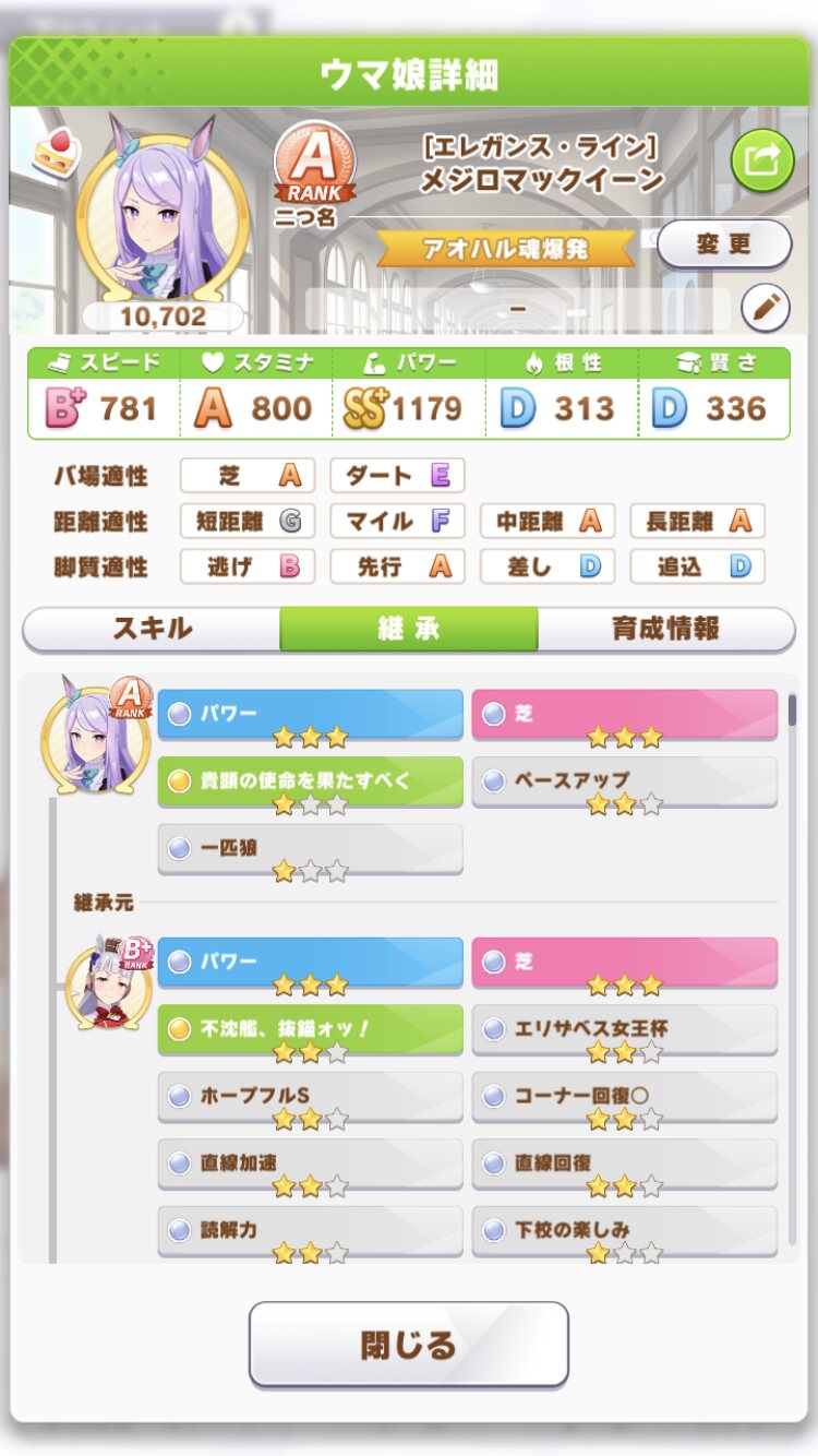 私が出せるのはスピ6スタ2(逆かもしれんが)とかなので逆にクソみたいな因子置いとけばネタになるかなって