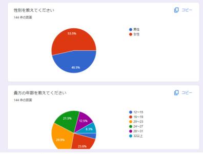 まぁ一般論としてアンケート(というめんどくさいもの)にわざわざ回答するのは女性が多いと言われてるから男女比に関してはかなり偏ってると思うよ