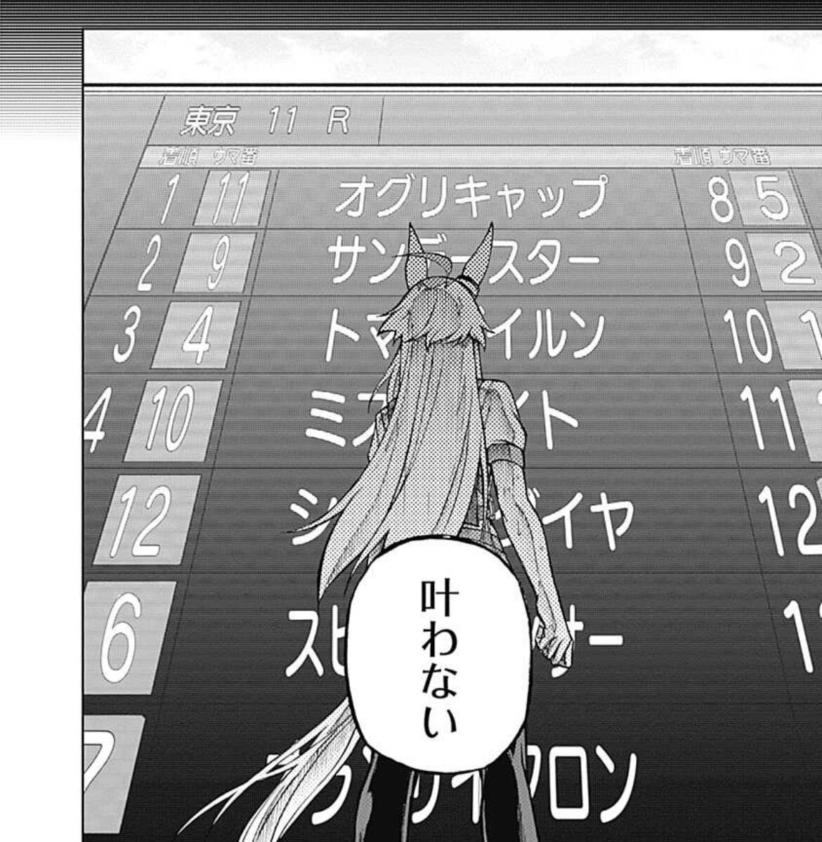 「真剣勝負」の重みを知らないウララを懐かしく感じる気持ちとか、有マで戦い抜いた二人に対する敬意とか、色々感じることはあったんだけどそれ以上に有マ敗北の悔しさがぶり返してきて手が動かない
