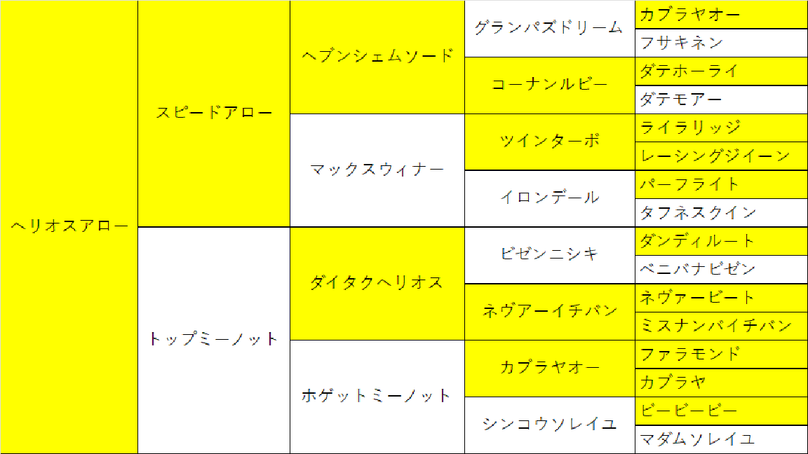 ダテホーライとコーナンルビーもか。そりゃヘブンシェムソード逃げ馬になるわ